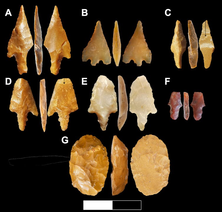 These structures – which we think of more as shelters than “houses” – were used for any and all activities. Inside, we found evidence of stone tool-making, cooking and eating, as well as lost and broken tools used for processing animal hides.
