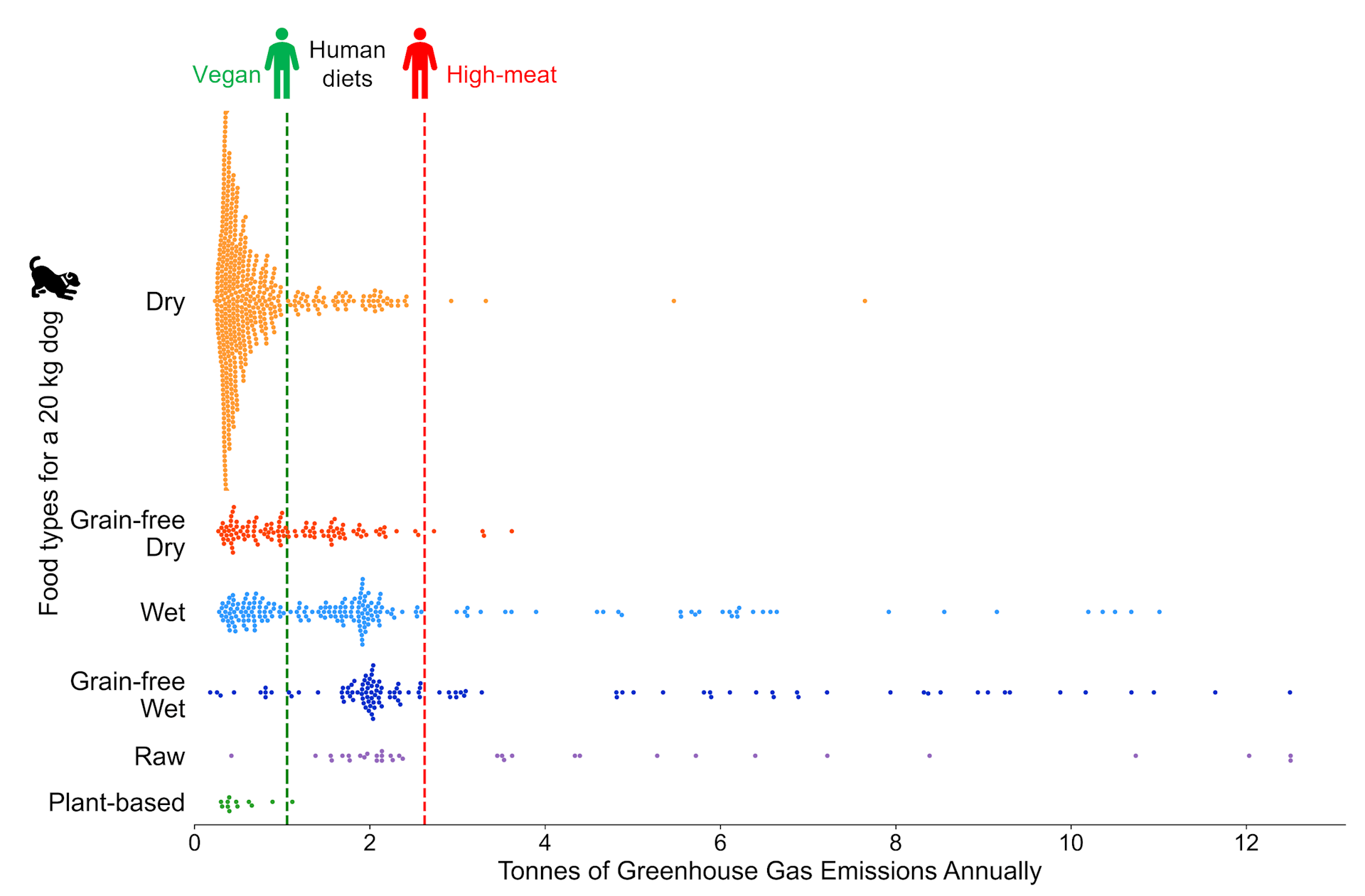 Dog foods showed over 65 times more variation in the effect they have on the planet, compared to a 2.5-fold difference between vegan and high-meat human diets. The potential to reduce – or increase – environmental damage by changing dog diets is enormous. By choosing meat products wisely for pet food and making labelling clearer, we can cut this hidden part of our food footprint and have healthy, well-fed dogs.